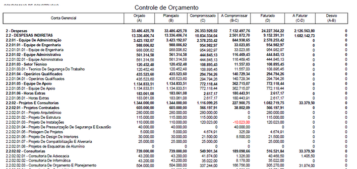 Apropriação das despesas da obra de acordo com a estrutura analítica do orçamento, comparado o valor orçado com o valor realizado, e possibilitando dessa forma que os desvios no custo sejam identificados em tempo hábil para adoção de medidas corretivas.
